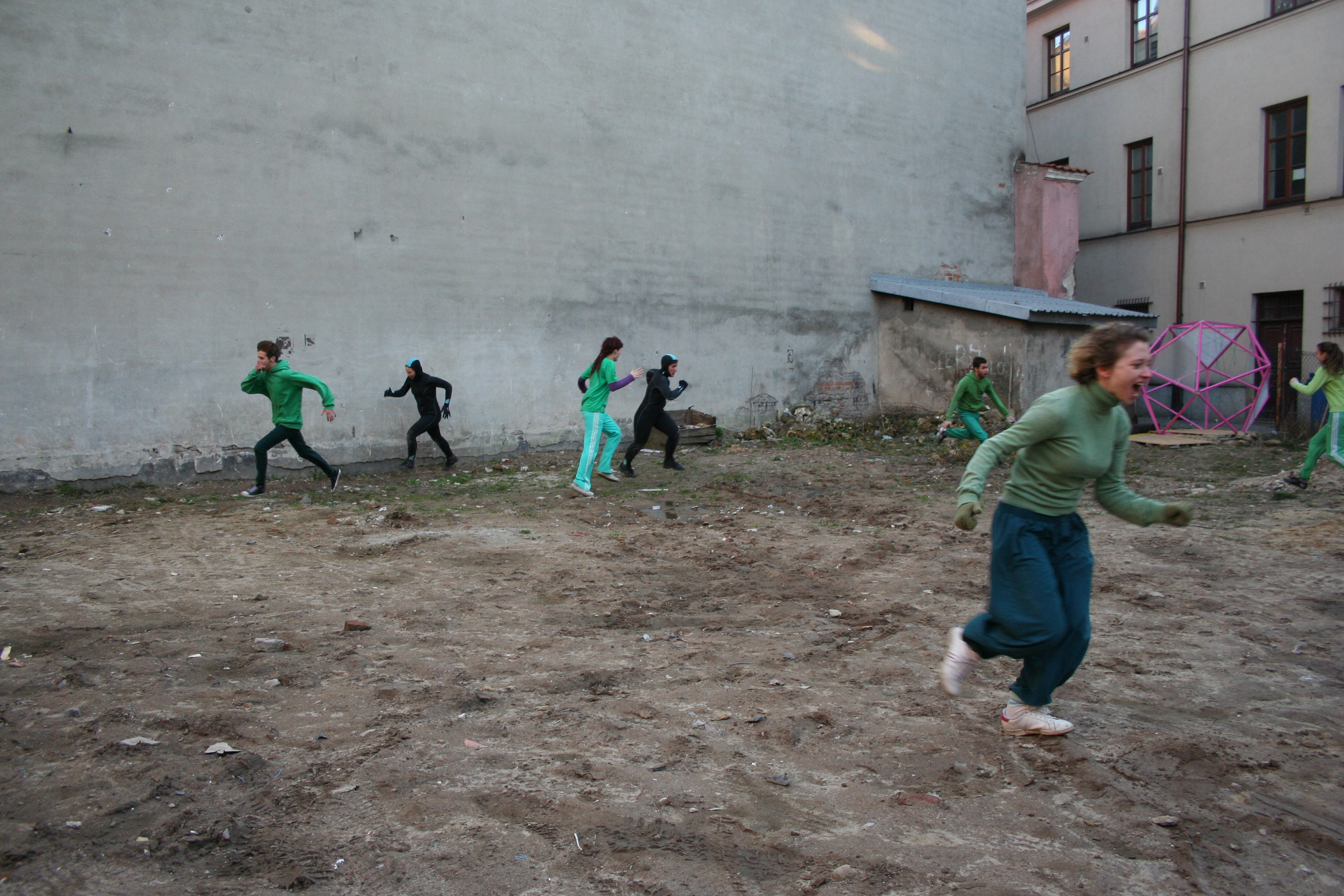 Un'indagine performativa "body-metrica" del centro della città di Lublino. Lo sperimentare ciò che ci sta attorno conduce il corpo in movimento verso l'ambiente costruito, alla ricerca di input per riempire il vuoto esistente tra corpo e architettura. Il divario è tra una forma umana organica, rotante, che non si adatta a nessun sistema, morbida, mutevole, propria di esseri umani che fingono di essere razionali e le costruzioni architettoniche razionali, dure, precise, non vive e che fingono di essere eterne. L'essere umano può danzare perché può sperimentare se stesso e ciò che lo circonda e lì, nell'esperienza, incontra lo spazio. Uno spazio che è sempre più modellato dall'architettura. E se permettessimo all'architettura di dare forma a una danza? E se una danza partisse dalla consapevolezza dell'architettura costruita del luogo in cui il corpo si muove? E se provassimo a diventare architettura?