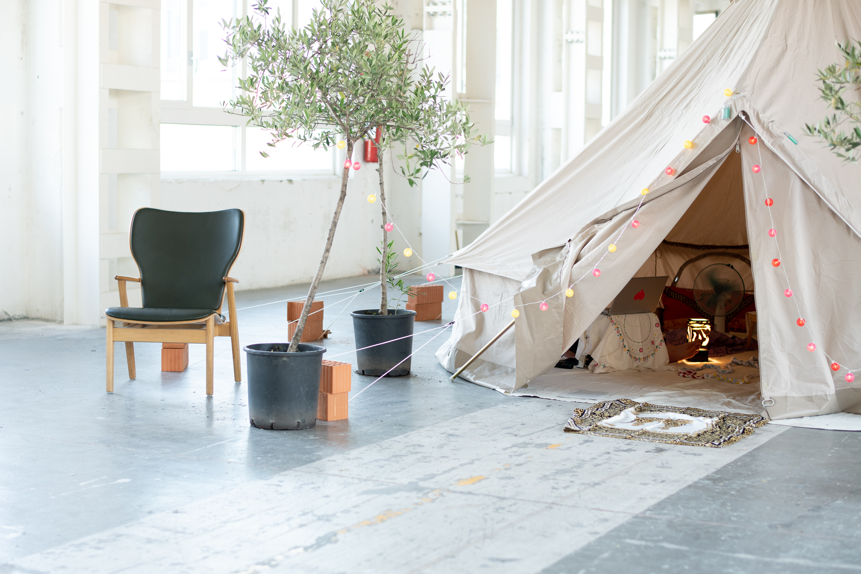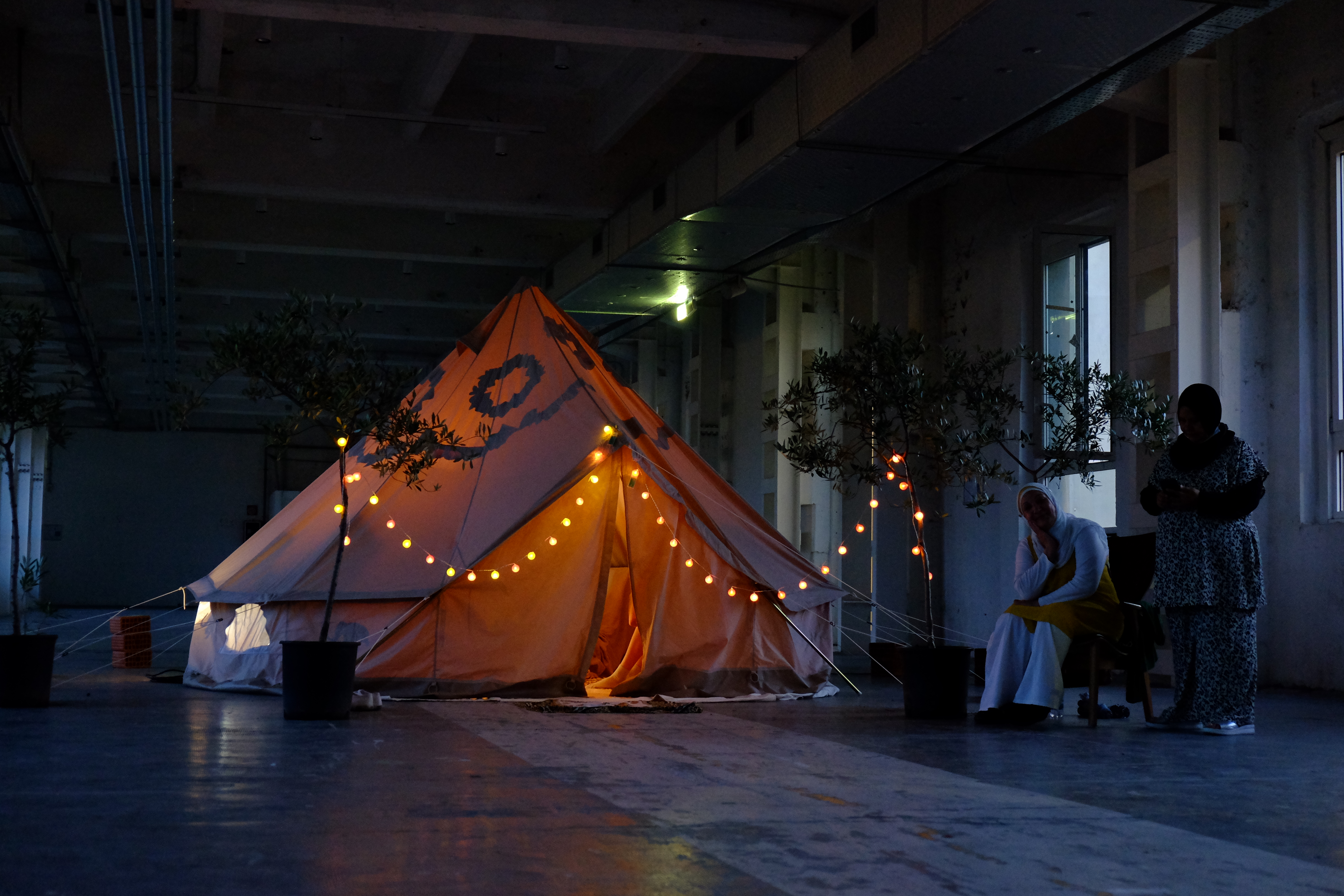 Concept and process Elisabetta Consonni Perfomance Elisabetta Consonni, Fatima Ferro Carpet Fatima Ferro Tent decoration Faiza Marei Video shooting Sara Bramani Editing Elisabetta Consonni Sound Neunau In the video Iuliana, Gehan, Fatima, Taslima